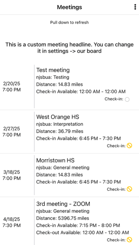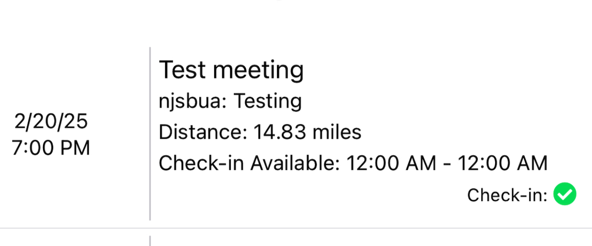 4. Find the date and time of Meeting you are attending and Check In.