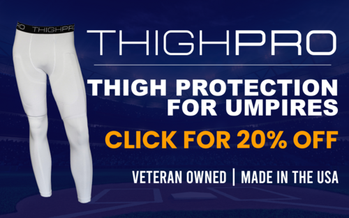 This will give you 20% off all purchases. Run, don't walk to get your new best friend in umpire protection. Padded shorts and full length tights to protect your inner thighs! www.ThighPro.com