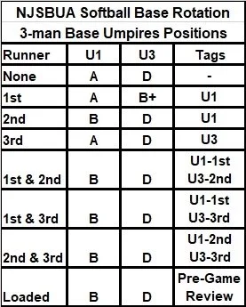 3 Man Reference Card for Base Positions for Baseball and Softball
