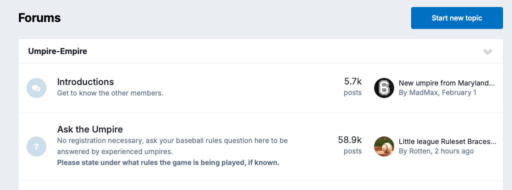 UmpireEmpire- forum based question and answer community for umpires. (sugg Steve Moskowitz)